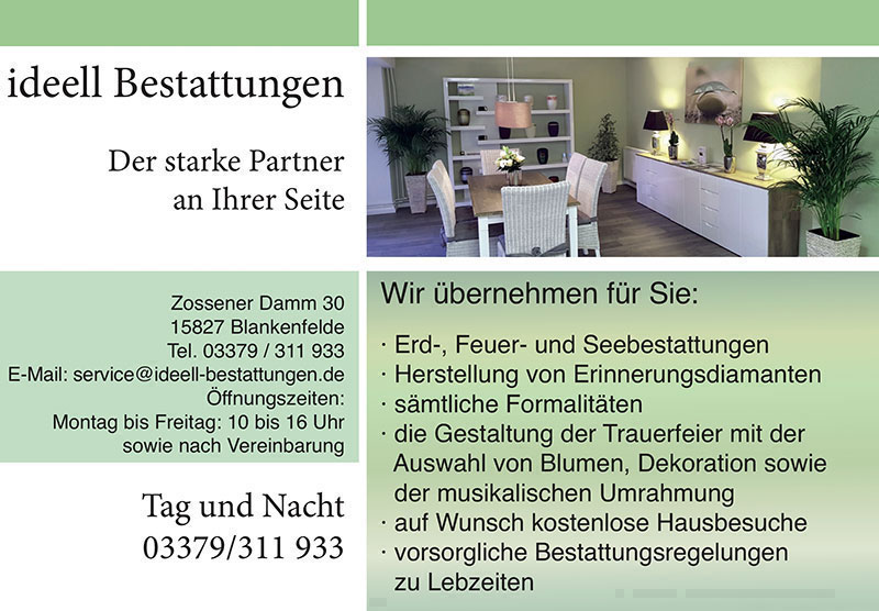 | Adresse: | Zossener Damm 30 15827 Blankenfelde |